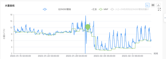 在DMA供水分區(qū)管理系統(tǒng)中,通過夜間小流量實(shí)時(shí)監(jiān)測,監(jiān)控管網(wǎng)漏點(diǎn),2022年交付項(xiàng)目中共計(jì)監(jiān)測漏點(diǎn)千余處,有效降低產(chǎn)銷差3-5個(gè)百分點(diǎn);