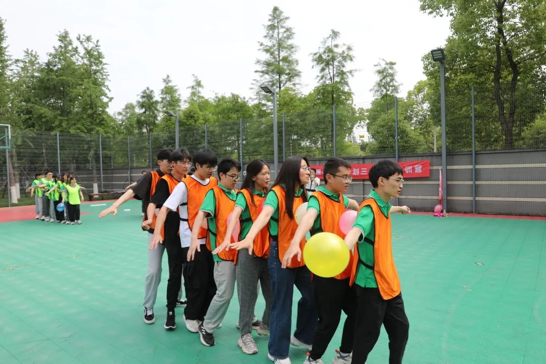 學員們分組排列,在不借助外力的情況下夾著氣球從起點走向終點。一次次練習讓學員們掌握了步調(diào)一致的秘訣,領(lǐng)悟了團隊節(jié)奏的奧義。