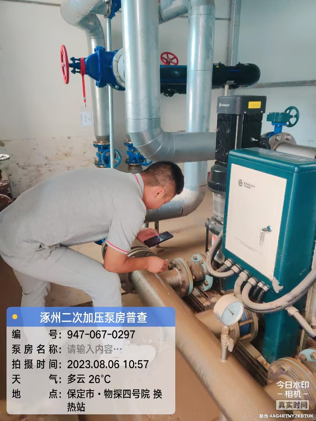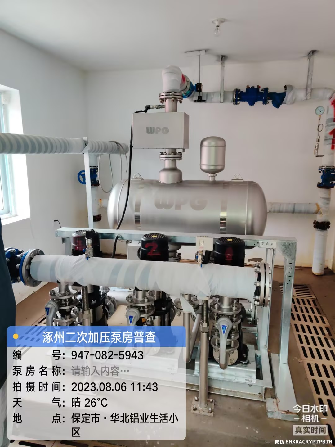 救援隊(duì)到達(dá)涿州后,第一時(shí)間對居民供水情況進(jìn)行了解,并與供水公司——涿州建投水務(wù)展開了工作對接。由于當(dāng)?shù)刂髁λ畯S被淹,居民生活用水難以解決,需要盡快排除困難解決民生問題,威派格領(lǐng)命接管涿州城區(qū)全部二供泵房的巡檢排查工作。