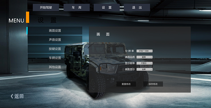 7.2、汽車設置界面:調(diào)整車輛各項動力學參數(shù)、車輛后視鏡及視角調(diào)整。
